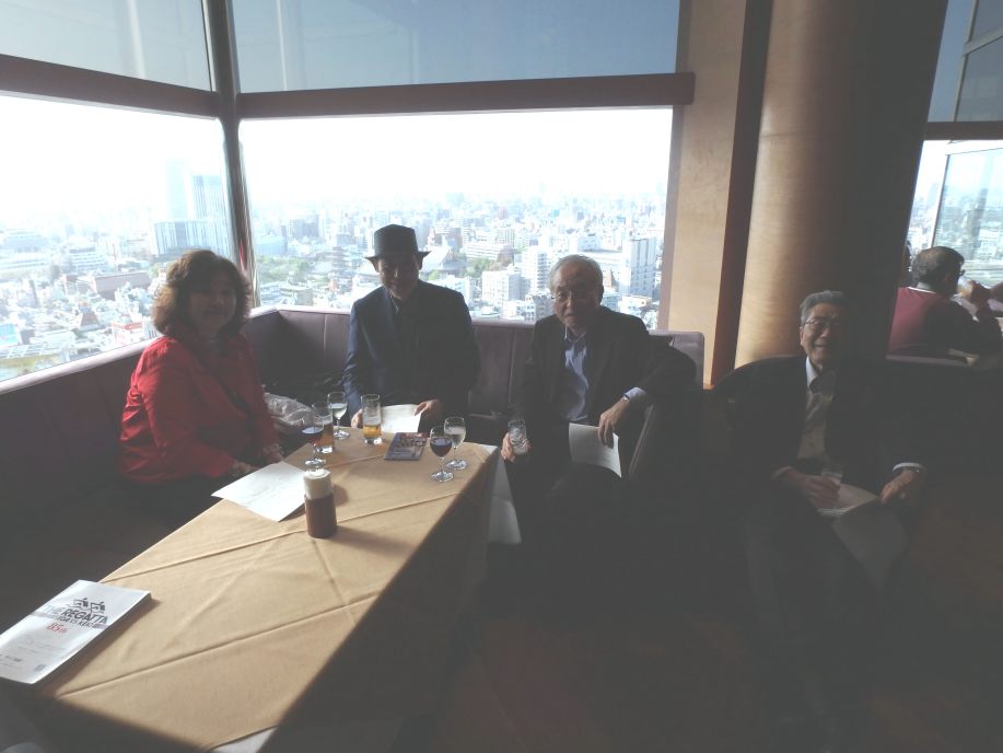 2016年4月17日の当日、予想通りの風雨悪天候にも拘わらず午前中からレガッタは決行されたが、昼頃からの強風に、14:30、観戦会有志が言問橋に集合した時にはレースは既に中断されていた。しかし、最終レースは強行されるとの報により、「あさひビール本社ビル最上階の会場から観戦することとした。