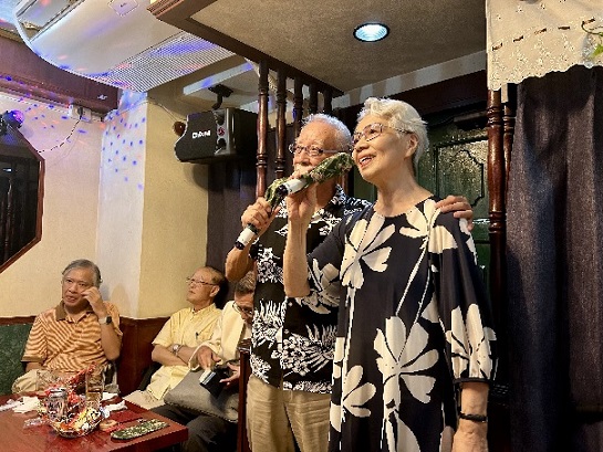 9月とは言え、残暑厳しい中、吉祥寺のカラオケスポット「友友」に16名が集まりました。 武蔵野の会で、自慢の喉を披露するのは、久方ぶりのことです。演歌、ポップス、グループサンウンズ、英語・イタリア語など外国語の歌ありで、それぞれの思いを込めて、歌っているように思えました。時と歳を忘れて楽しく歌い、いつの間にか、終わりの時間の16時10分前になり、諸江名誉会長の指揮による「紺碧の空」と校歌、更に谷中常任幹事の振りでエールを送り、散会となりました。