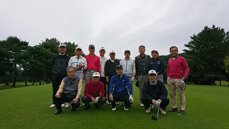 9月27日(木)第41回武蔵野稲門会ゴルフコンペ(平野杯)が高麗川カントリークラブにて開催されました。 雨による中止を見据えながらも朝全員ゴルフ場に集合。意外にもスタート時は雨が上がっており、一時傘を差す時間帯もあったものの後半は徐々に天気が回復、まずまずのコンディションでした。    出張先上海からの飛行機が故障で飛ばず、涙をのんでの欠席となった柳岡広和さんを除いた14名の競技。優勝は梅沢正春さん、準優勝が池田宏治さん、第3位が小室至さん。池田さんは80とダントツのベスグロ(最小スコア)ですが、優勝できないところが新ペリアの面白いところ。