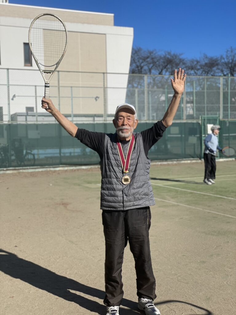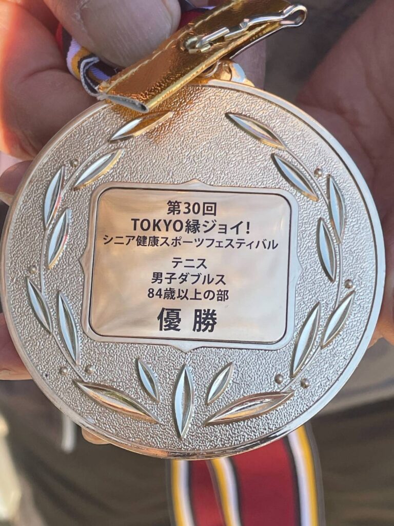 尚、武蔵野稲門会テニスに所属されている吉井様は、過日「第30回 TOKYO緑ジョイ! シニア健康スポーツフェスティバル」の男子ダブルス84歳以上の部で優勝をされましたのでご報告申し上げます(写真添付)。