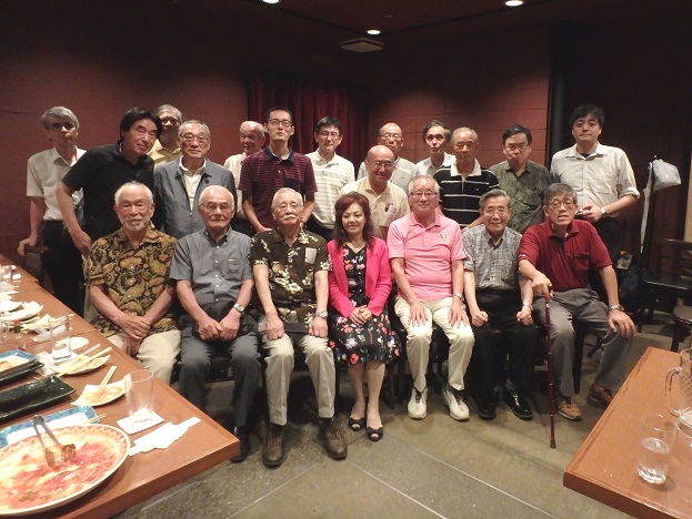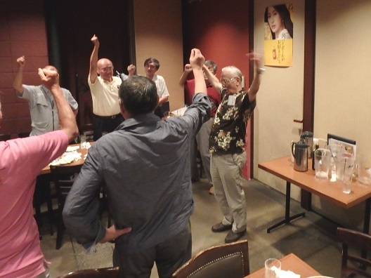 暫く歓談の後、座長のリードで応援歌「紺碧の空」を、皆で肩を組み元気よく歌い上げ、最後は全員の集合写真を撮って散会した。