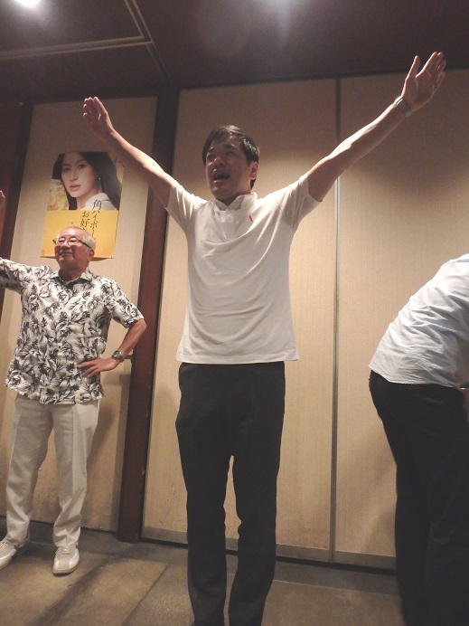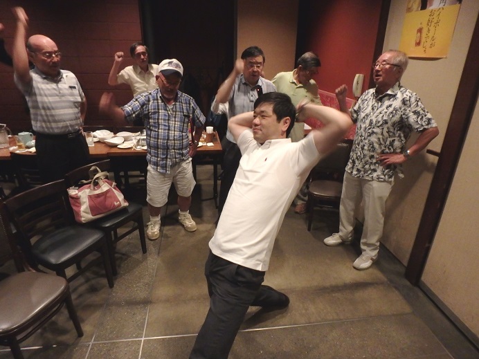 宴たけなわの中、8時10分頃には会計報告・集金を済ませ、野本さんの指揮により応援歌・校歌を歌い、集合写真を撮って解散となりました。