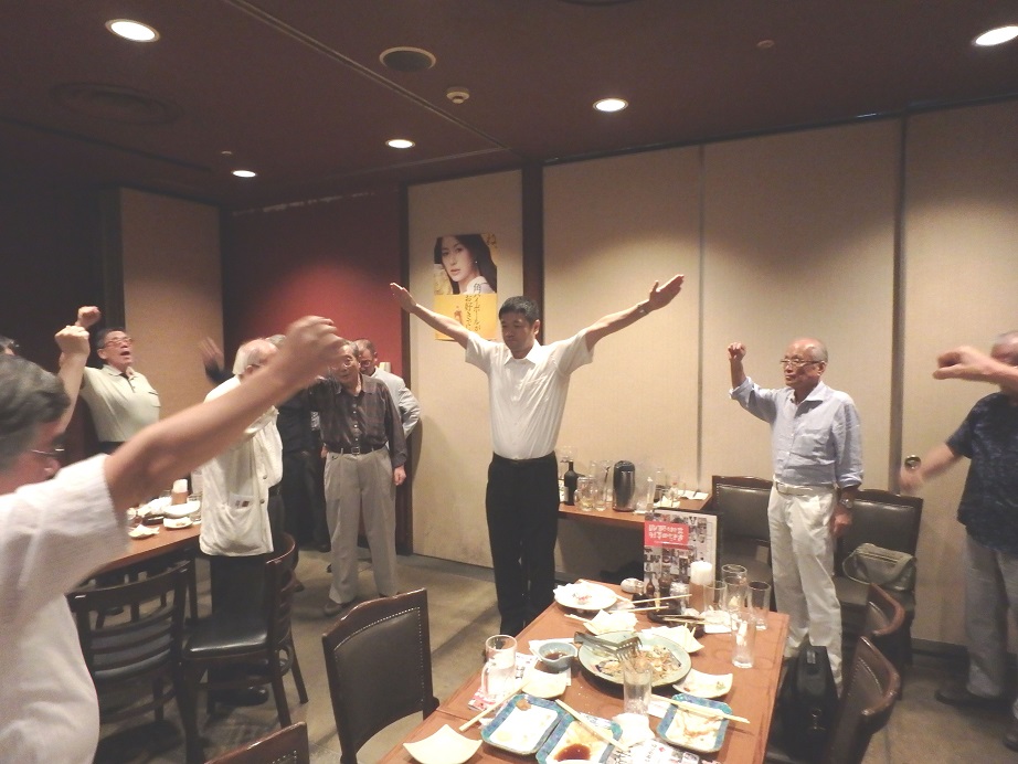 早稲田スポーツの部、茂木さんから早稲田ラグビーが菅平の練習試合で帝京大学に大敗したとの報告があり、今年も帝京大学は強いようだ。 ただし、早稲田ラグビーにも有望な一年生が入り活躍が期待される。しばらくの歓談後、野本さんのリードで校歌を歌い、集合写真を撮り一次会を終えた。