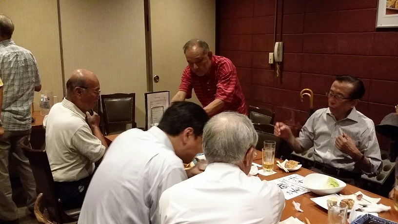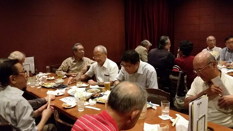 2017年8月16日(第3水曜日)都心部連続降雨記録14日目の水曜日、出足を心配する必要もなくいつもの場所・戎ビアホールに20名の元気な会員が集まりお盆明けの一夜を堪能しました。今回は常連組を何人か欠くなかで新たにお二方の参加があり、もう一人105日に及ぶピースボート世界一周旅行を終えて帰国した“はるみん”こと福田晴美さんが参加しスピーチをお願いしました。 杉並稲門会囲碁部で片岡さんと親しく、座長とも「出陣学徒の会」で仲間の好漢森さんが自己紹介とその信条を披歴、次に練馬稲門会囲碁部で片岡さんと親しい築山さんが二度目の登場となりました。初参加は今年の東京三多摩支部事務局長の任に当たる緒方 章さん。堂々たる体躯にも拘らず優しい雰囲気を漂わせたスピーチで一座に溶け込んでくれました。 圧巻は“はるみん”の世界一周クルーズ、西回りの航路をとり東南アジアからインド洋に更にはスエズを抜けて地中海ギリシャ・イタリアから英仏海峡へ、北欧のフィョルド、火山国アイスランドに立ち寄り大西洋を南下、カリブ海からパナマ運河を抜けて太平洋に出て帰国。その間オプショナルツアーフライトで名所旧跡を訪問、アウシュビッツへも鎮魂の旅!もう思い残すことは無いようですね!驚いたのは航海中に「早稲田の集まり」10数名で交歓した話でした。早稲田は人懐っこいからすぐ集まるようです。100枚を超える写真があるようなので武蔵野稲門会HPに連続起稿して貰いたいものです。 ワセダスポーツの部、茂木さんからラグビー菅平マッチで外国人のいる強豪・大東文化大 を破った今年の早稲田はやるぞ!との報告。