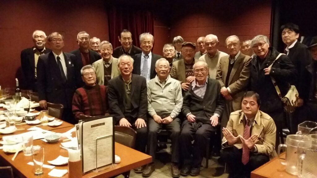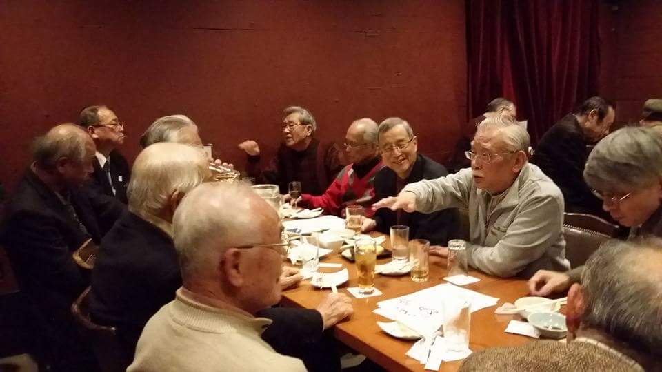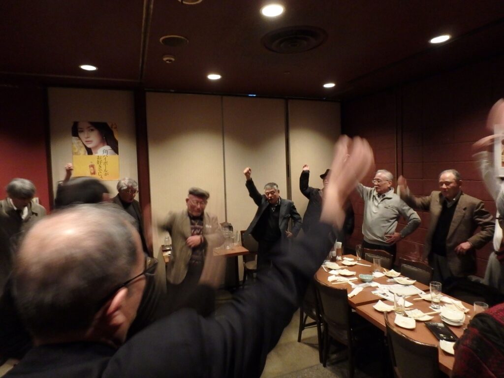 今月は、他の同好会や他の稲門会の企画した温泉旅行等が続いているので、今日は少ないのではと予想していた。ところが、山口さんが、バス旅行で一緒になったとかで、練馬稲門会の築山哲(S41,理工)さんを連れてきた。角田さんは、1週間後に迫った「記念艦三笠見学および横須賀軍港クルージング」の最後の人集めに、久しぶりに顔を出した。鈴木武さんもしばらく顔を出していなかったが、顔を出して、4月の花見の会の案内をする。牛込さんの顔も見える。東出さんは前回に続いて顔を出し、国立の扇田さん、マナーキッズの田中さんは、もはや三水会の押しも押されもしない常連だ。扇田さんが、国立の一木会の夜桜見物への参加を皆に呼びかけて、いつものメニューとは微妙に異なる料理に、舌鼓を打ちつつ、ビールにワインに焼酎にと杯を重ねた。最後に駆けつけた鈴木徹さんにビールを出したところで、締めの合図となり、結局総勢24名の紺碧の空と校歌の斉唱となった。リードは、足下もおぼつかない松本誠さんの頼りなげながらも渾身のリードである。最後は、集合写真を撮り、三水会が終了した。