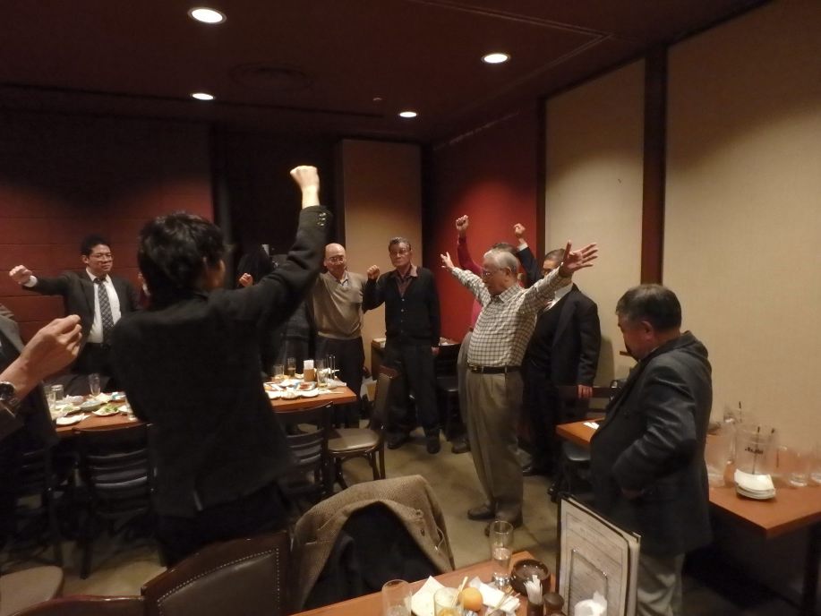 即座に応じた諸江座長、年末に相応しい手短かなコメントで一斉に乾杯、そのまま続いて、「今年の反省と来年の抱負を、一人ずつ話そうではないか!」ということに相成った。