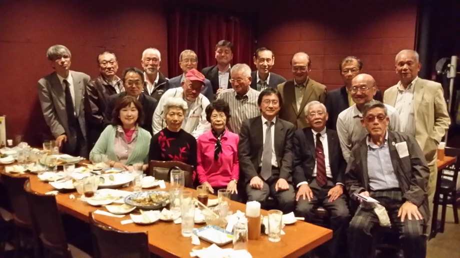 10月21日は東京専門学校(現在の早稲田大学)創立の日です。その記念すべき日に武蔵野・吉祥寺の地に稲友が集まり、スポーツの秋に向けて侃侃諤諤の談義に花を咲かせました。吉井 滋さんは開場を待ちわびて早くからカウンターで始めておりました。三水会はお休みと言ったのですが結局最後まで粘りました。先ず座長から18日に稲門祭来場、平和祈念碑献花式参列の三水会の方々へ感謝の言葉。この日の参加者は女性4人、詫摩さんは奥様とご一緒、佐川さん、福田さん、杉並第2ブロックの藤崎さんは仕事を終えて第7ブロックの飲み会から駆けつけてくれました。男性軍はすっかり元気に。詫摩美惠子さんは声楽家ですが、一度ピアノ・フルート伴奏で古典曲を聴きたいと思います。お洒落な佐川さんは素敵なコスチューム(誰だ!勝負服といったのは?)福田さんからは10月31日(土)に開催する「TOKYO CHORUS ANNUAL SHOW 2015」の案内(早慶戦第一戦とぶつかりますが野球の嫌いな人は其方にどうぞ。(問い合わせ先 harumin@r6.ucpm.ne.jp)ラグビー話は冷静な現状分析。若武者・藤田選手は早明ラグビーは出ないようなので興味は半減か。野球は明法戦で法政が勝てば早慶戦も盛り上がるのですが明治・高山の欠場に期待しましょう。鴛海さんからはもう一つの21日秩父宮ラグビー場仮設「出陣学徒壮行の地」碑前追悼式参列、続いて本校小野記念講堂講演「学徒出陣を語り継ぐ」参加の報告。何がきっかけか忘れましたが谷内相談役から、昭和史の大講演が熱をもって語られて一同静聴、さすが教養溢れる早稲田の集まり!飲んでばかりではいけません。最後に「都の西北」とワセスポの勝利を期して肩組みながらもう一曲「紺碧の空」座長リードを藤崎さんお褒め頂き恐縮です!飲み足らない稲友はアイリッシュ・パブ「サリバンズ」で黒ビールとジントニック(炭鉱夫の好んだ酒)で嗽をして帰宅。来月は忘年三水会です。忘れないで!