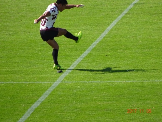 会場は神奈川県立相模原公園に隣接のギオン競技場公園の木々は紅葉も始まり、秋の草花も手入れ良く、グラウンドの天然柴も鮮やかなグリ-ンで申し分ない環境。ただトラックのある陸上競技場なので撮影距離が離れるのが残念。