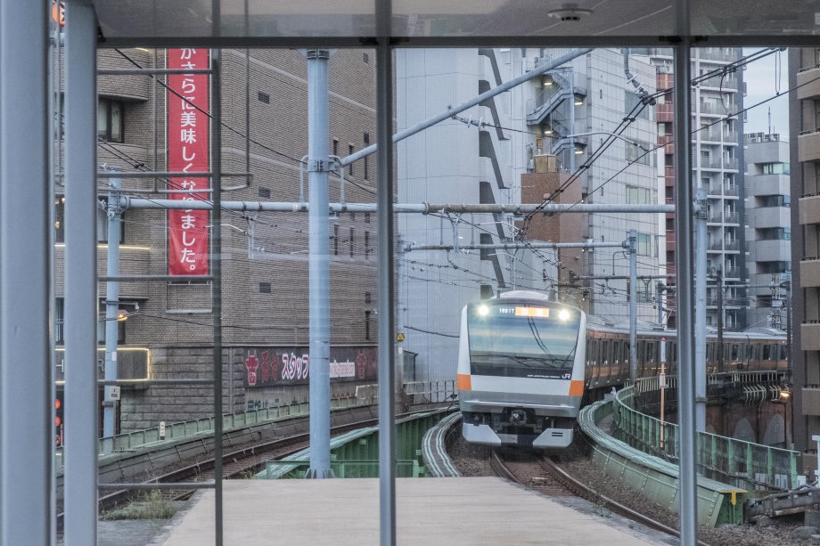 カフェの目の前をガラス戸越しに中央線が通る―――。