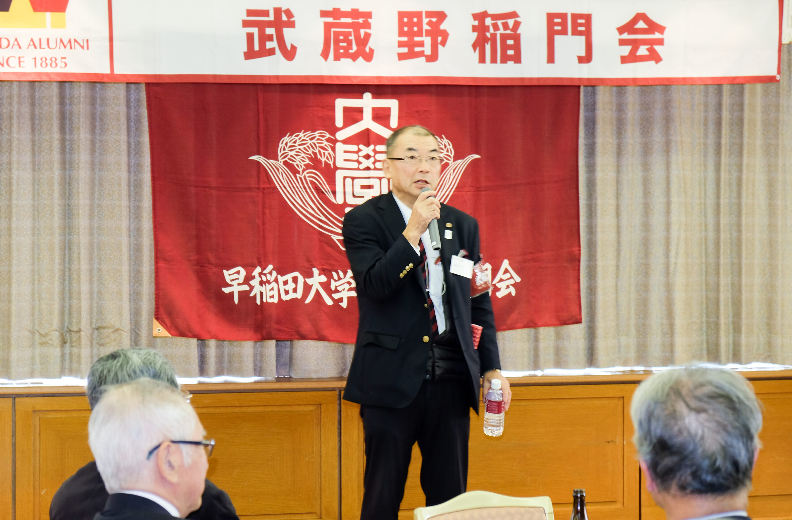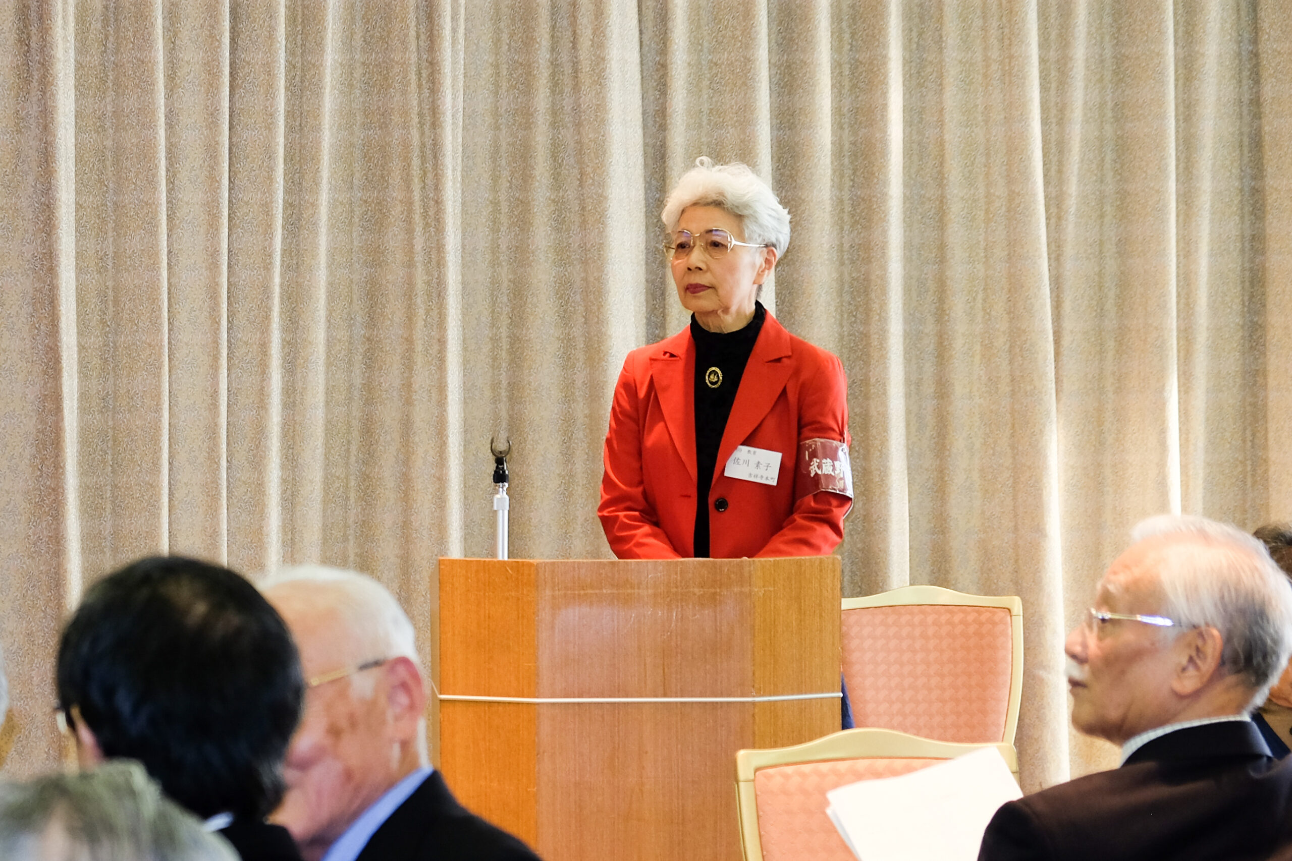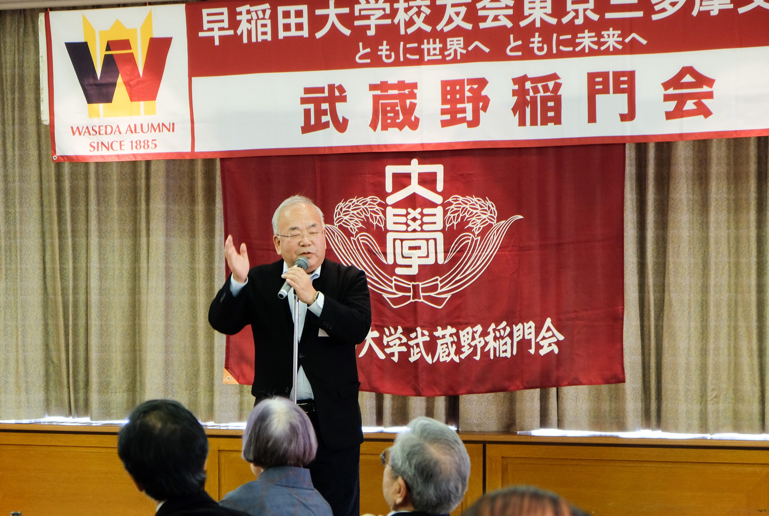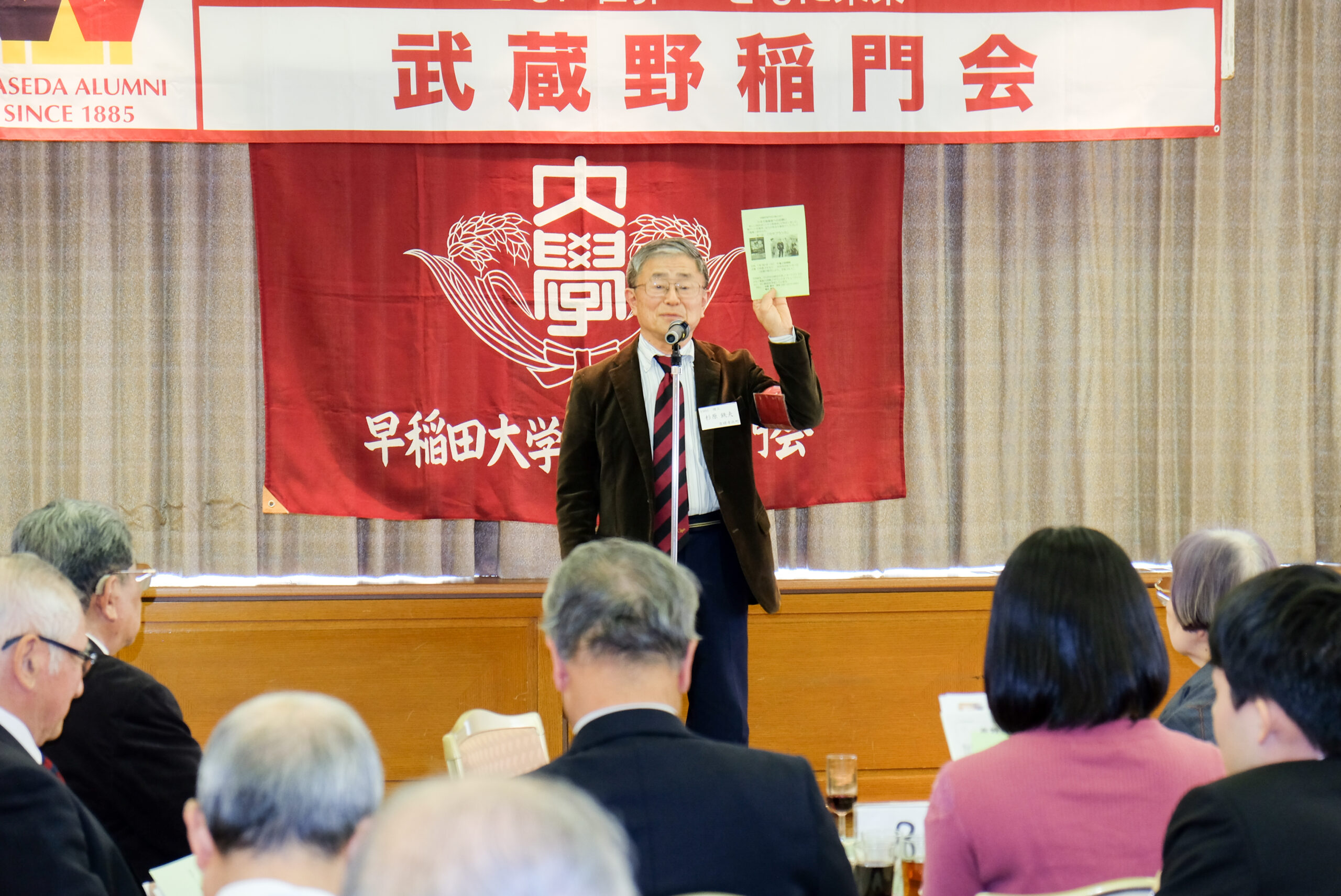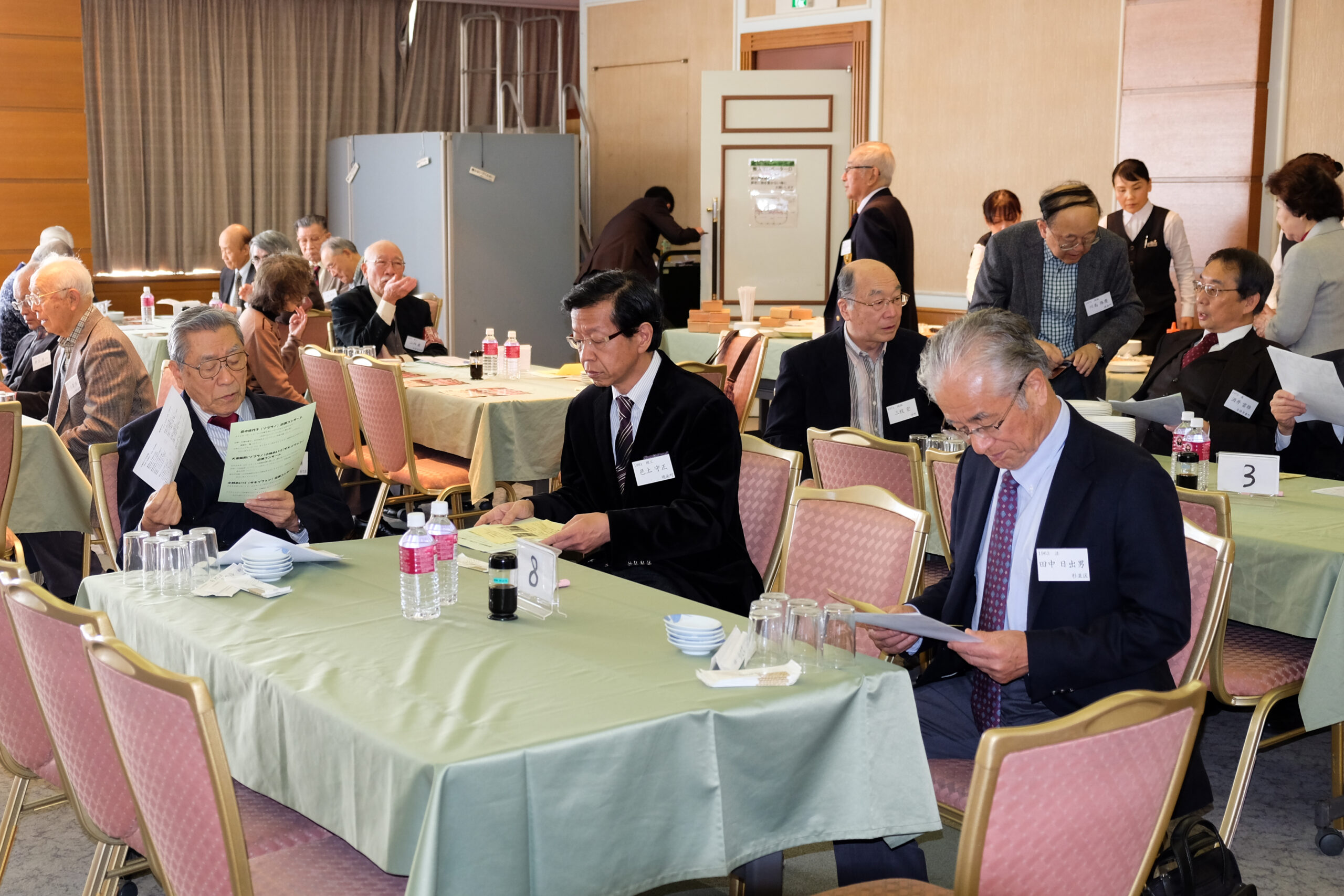 その後、名誉会員である西原春夫元総長より「新春のお話」を頂きました。人生百年と言われるようになった今日、どんな気構えで生きていくのが良いのかを、人の一生を駅伝に例えて、60歳までの往路、60歳以後がいよいよ復路であるというお話は、ユーモアと含蓄に富んだもので、出席者一同を大いに励ますものでした。