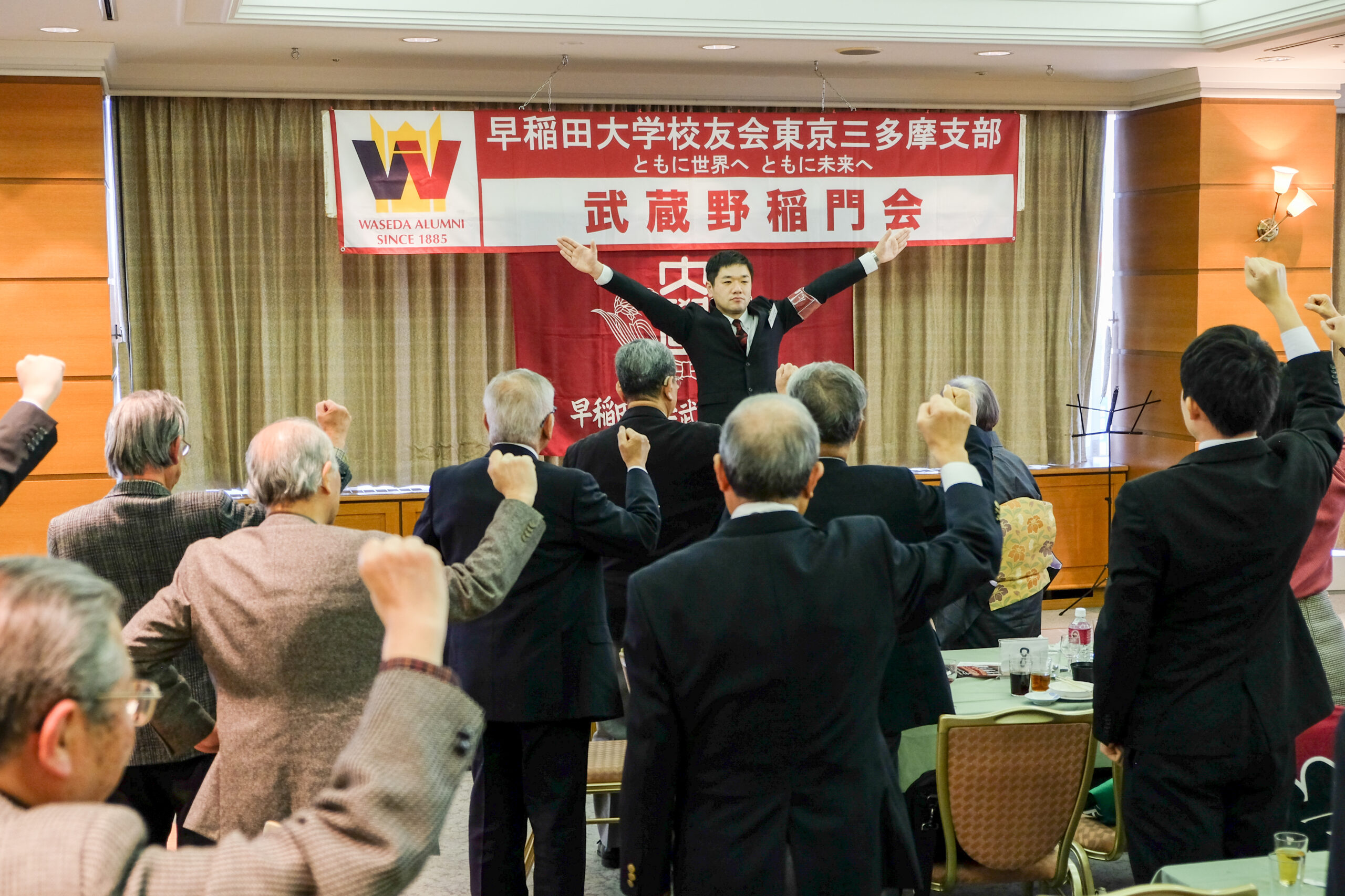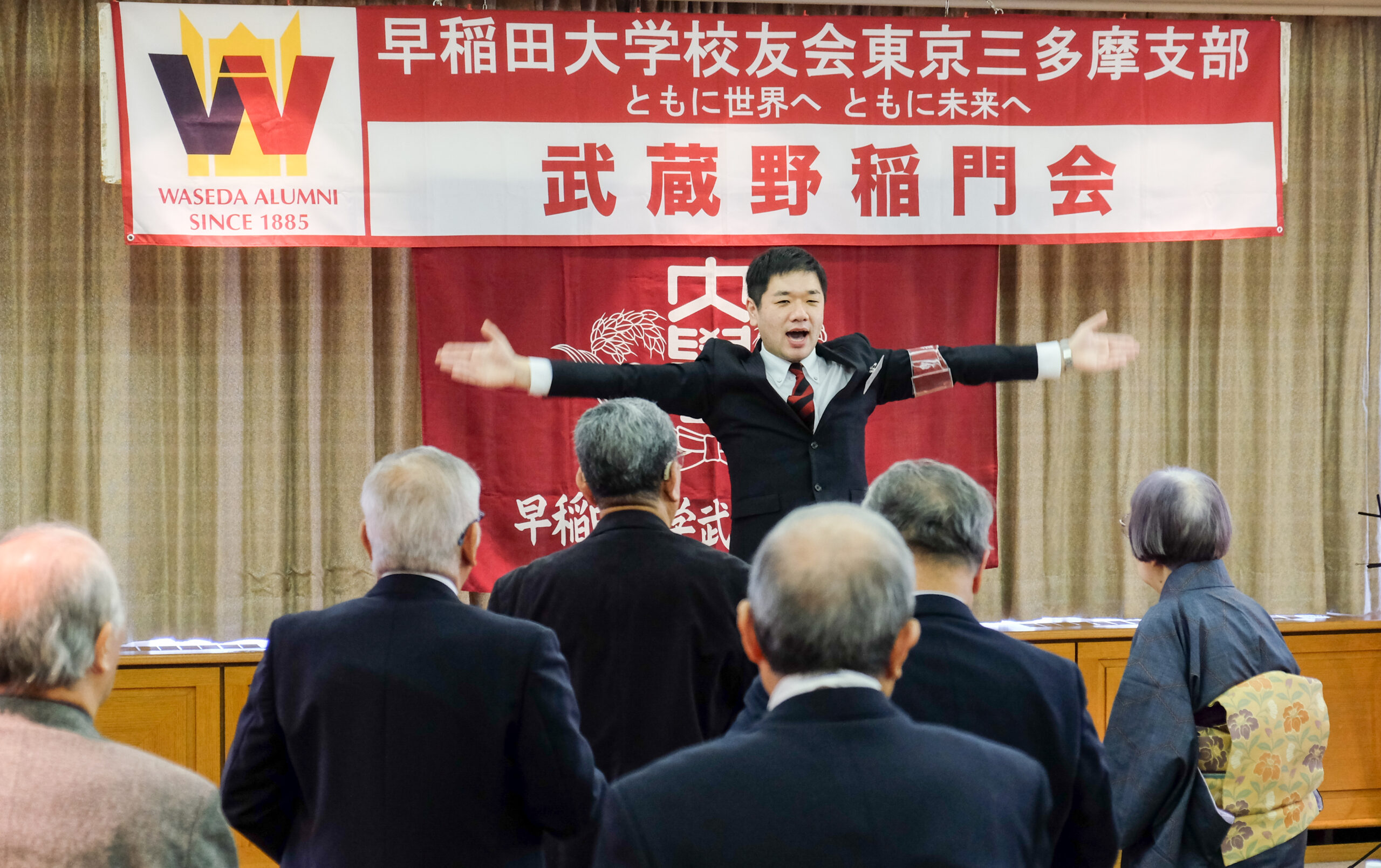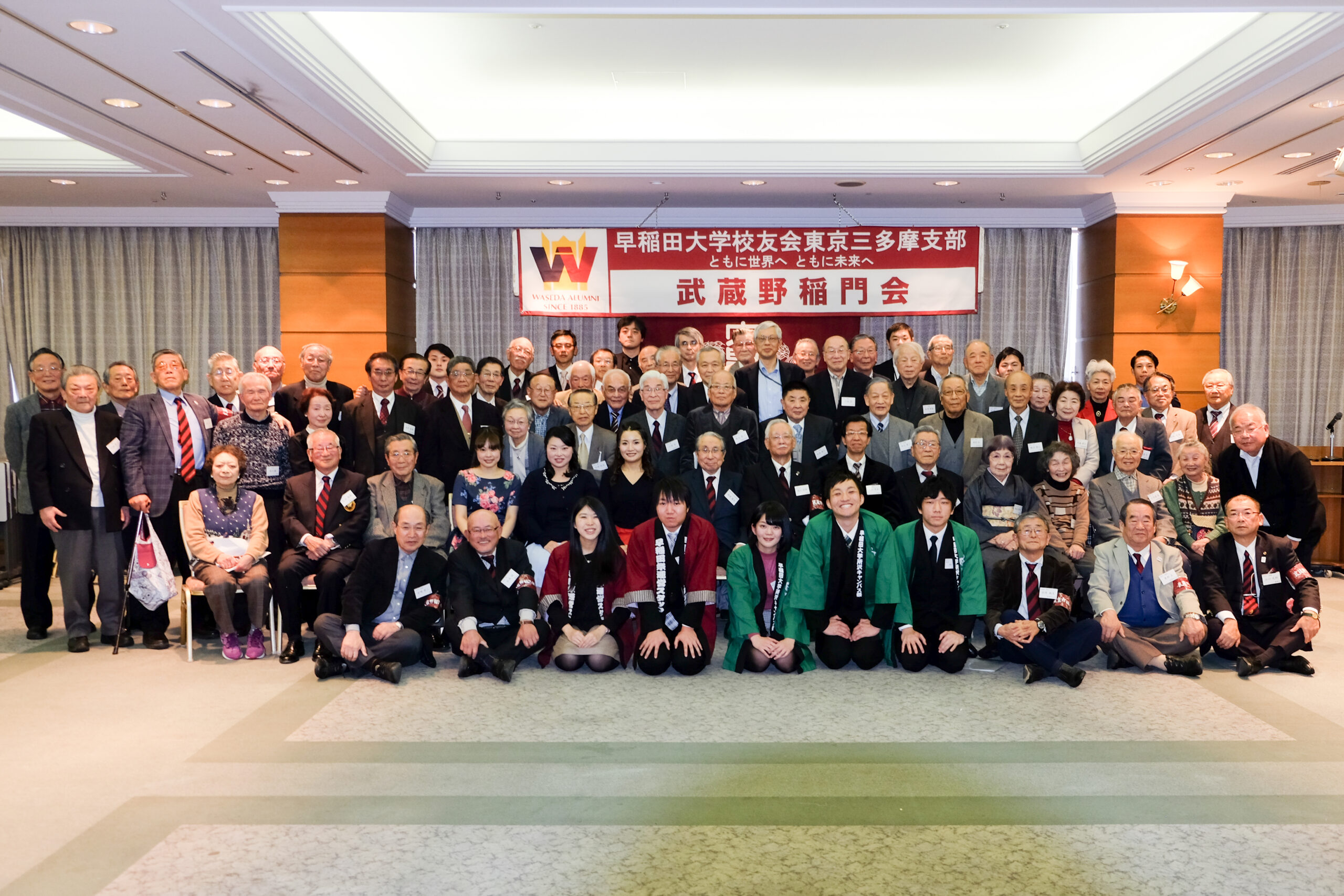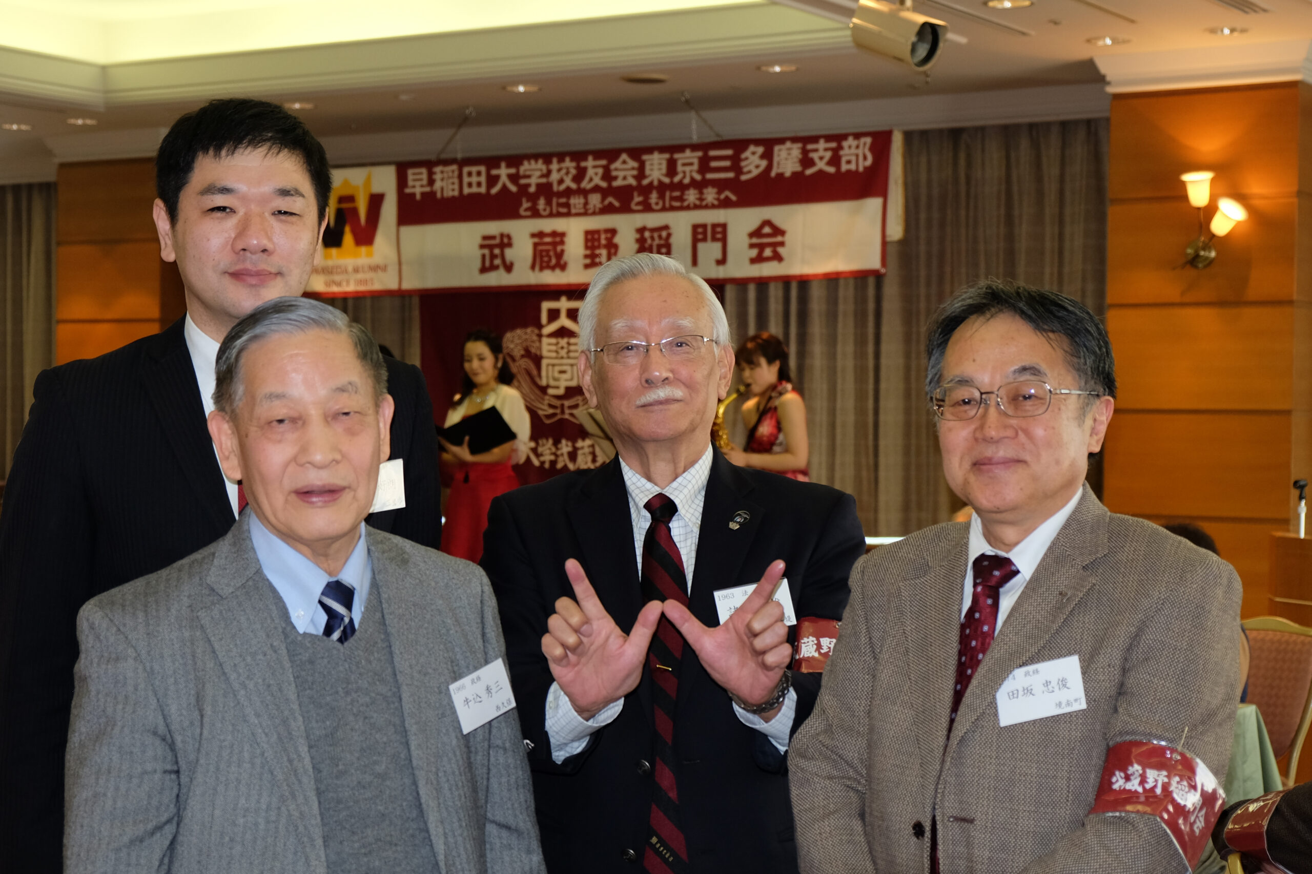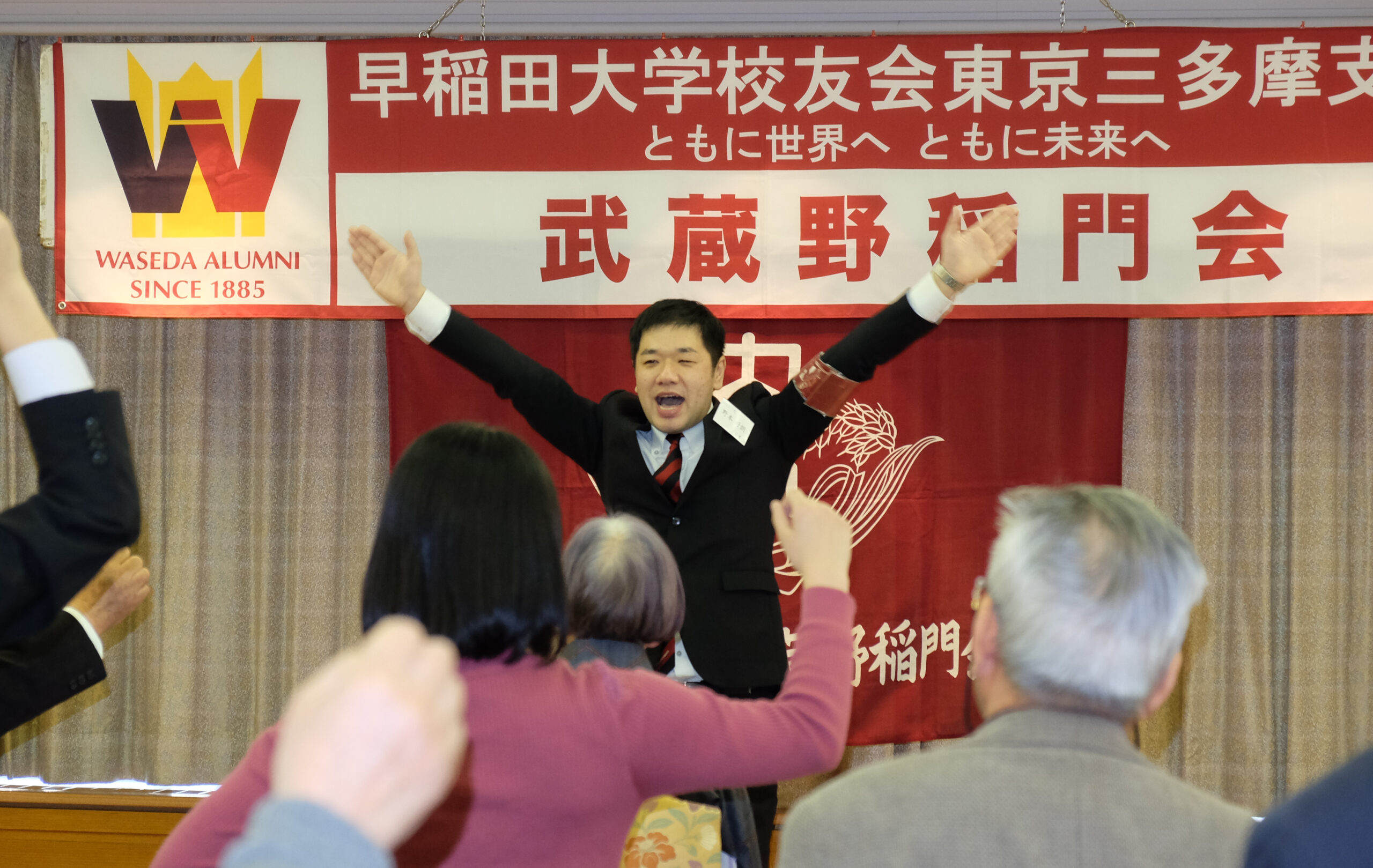 最後は、恒例通り、野本好朗さんの力強い指揮による参加者全員での校歌斉唱、その後記念撮影となりました。今年も、活力溢れる武蔵野稲門会のスタートを切ることが出来ました。