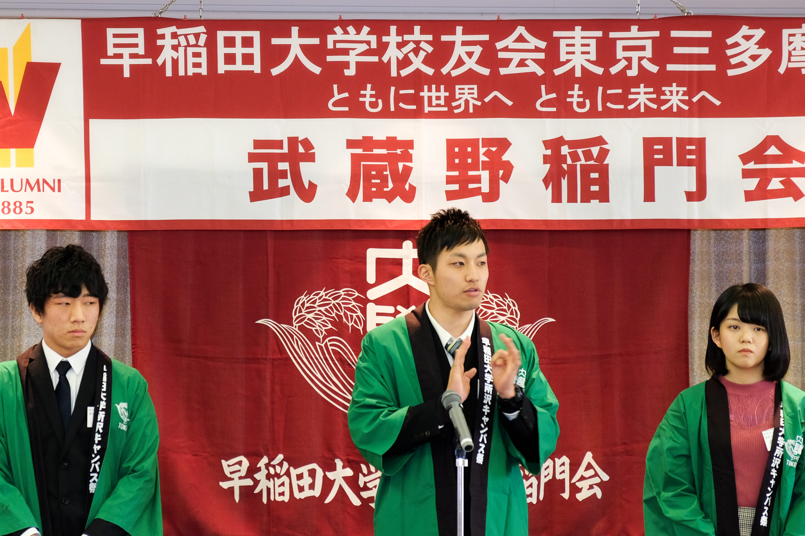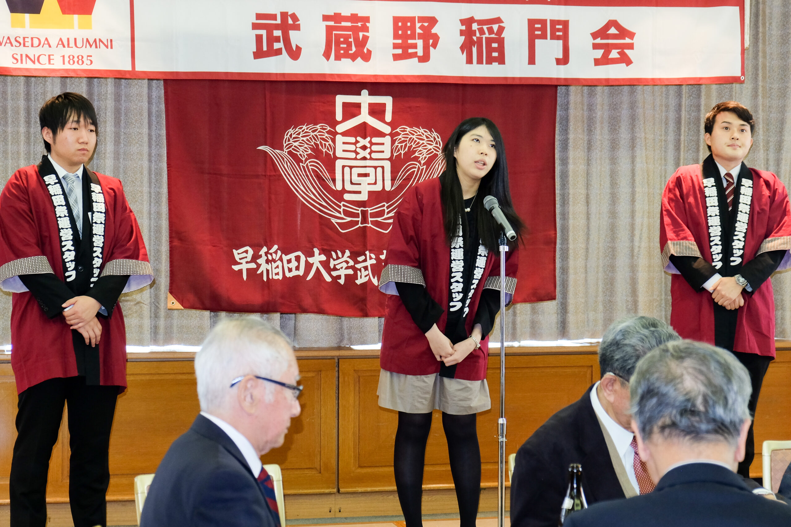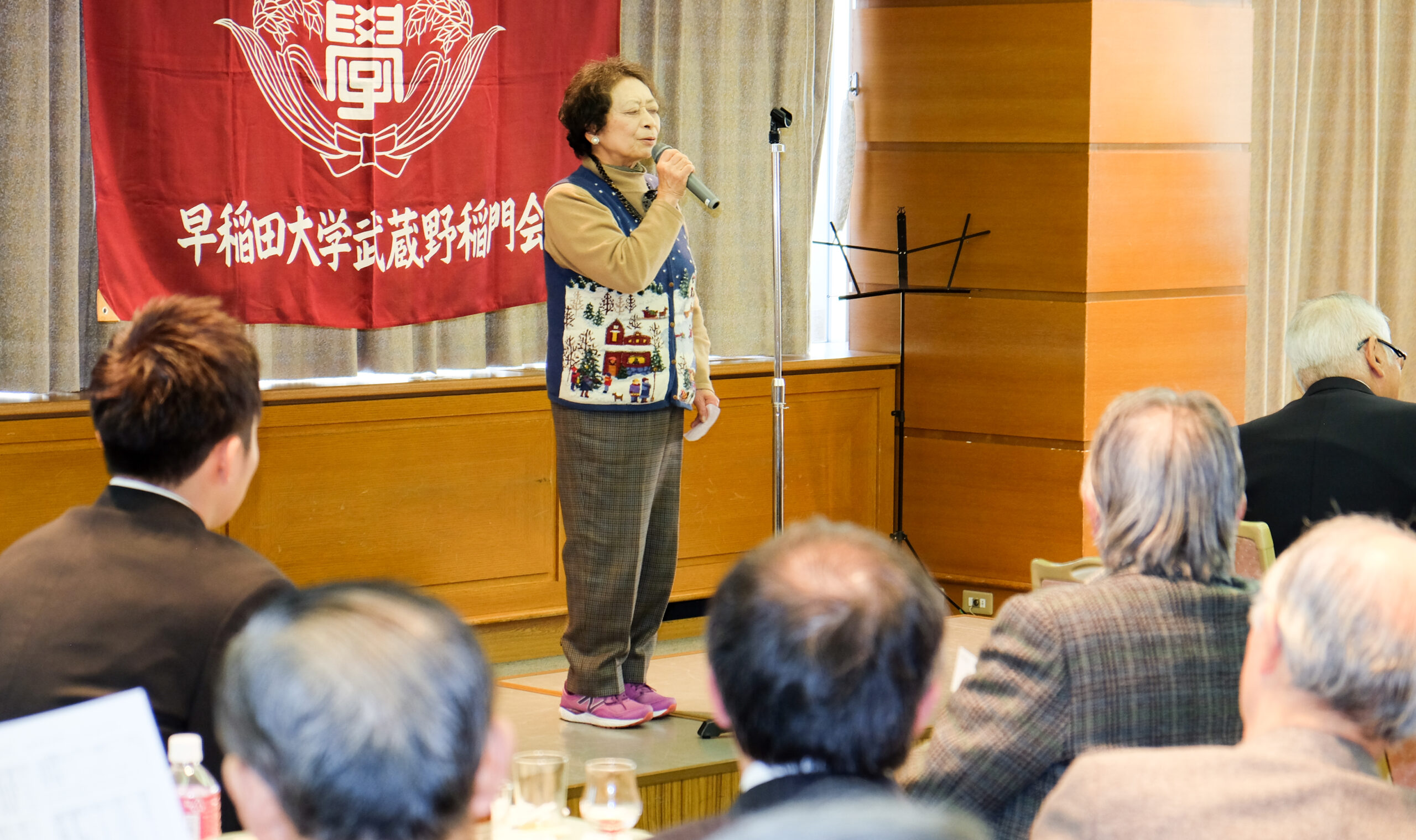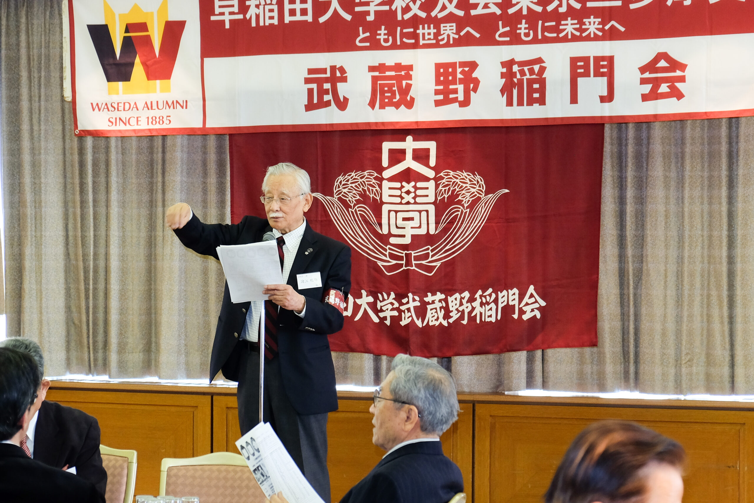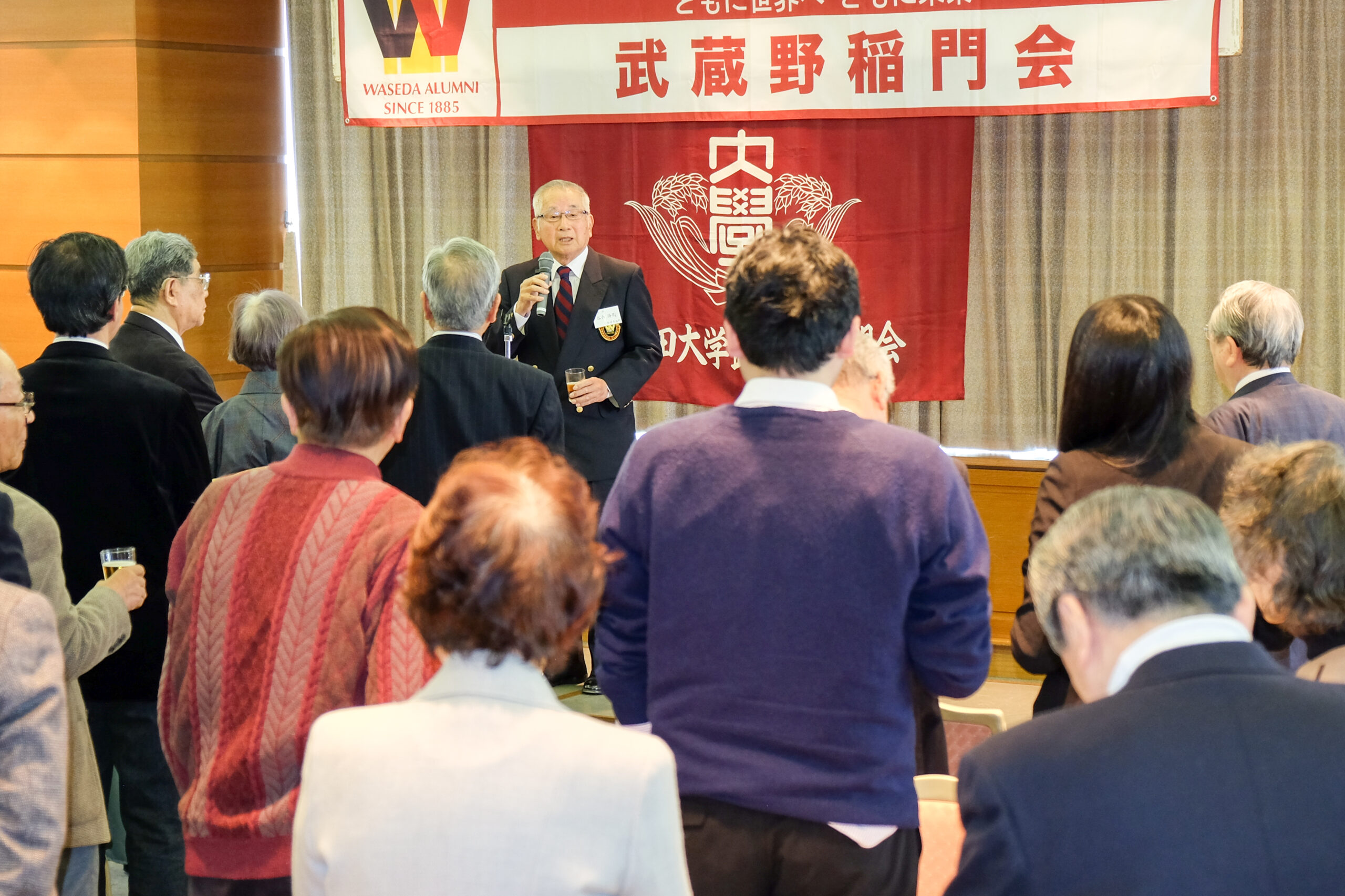 最後は、恒例通り、野本好朗さんの力強い指揮による参加者全員での校歌斉唱、その後記念撮影となりました。今年も、活力溢れる武蔵野稲門会のスタートを切ることが出来ました。