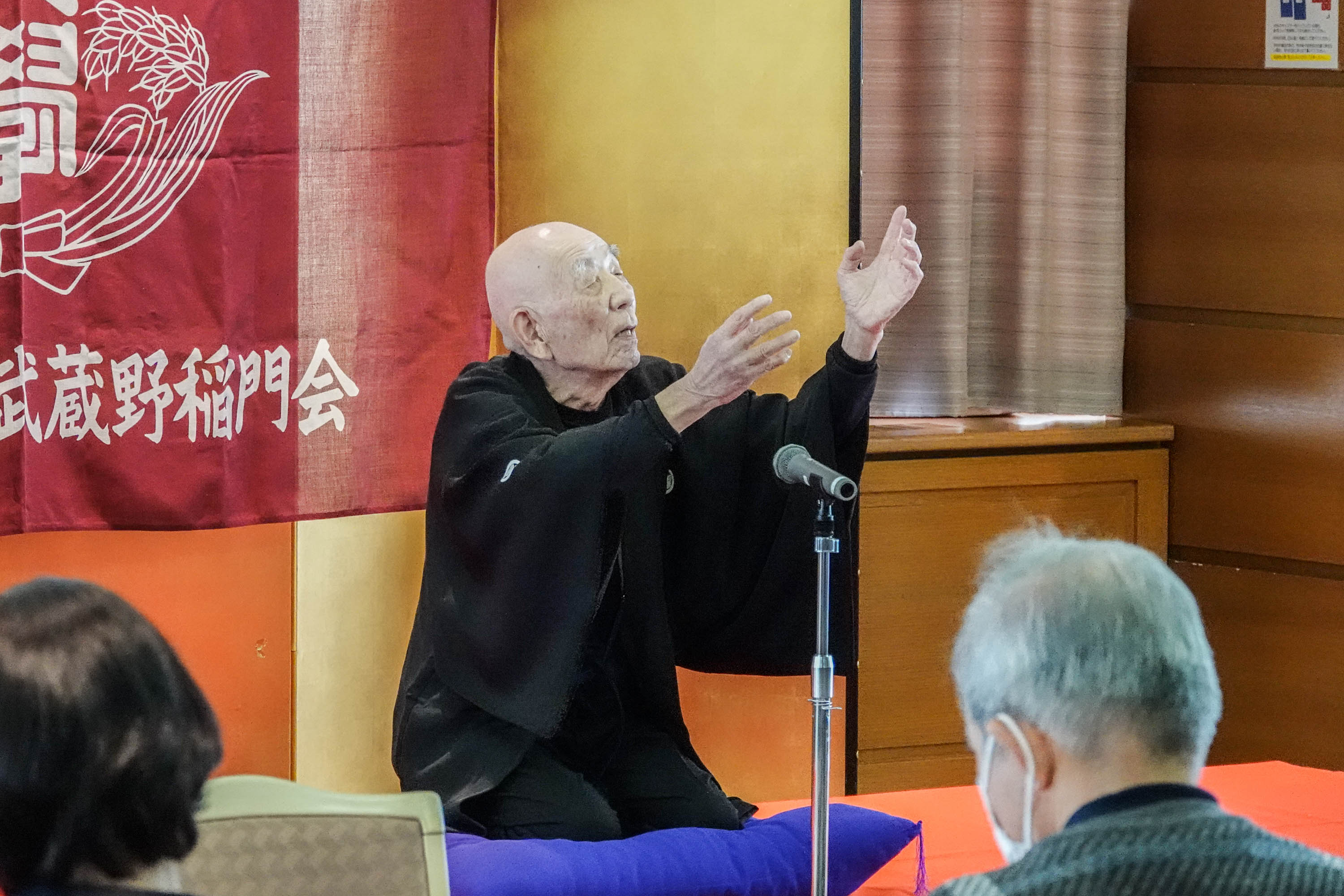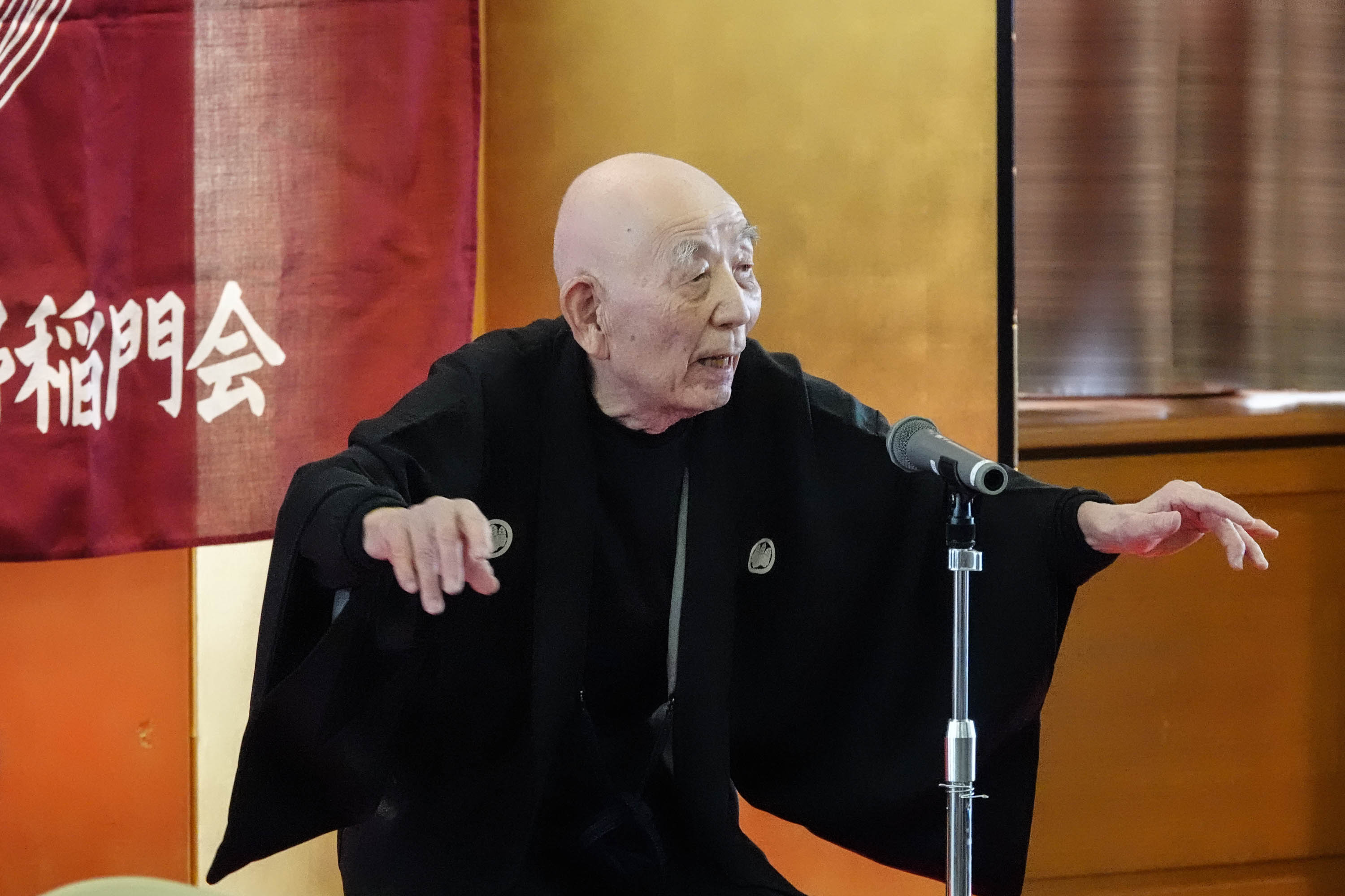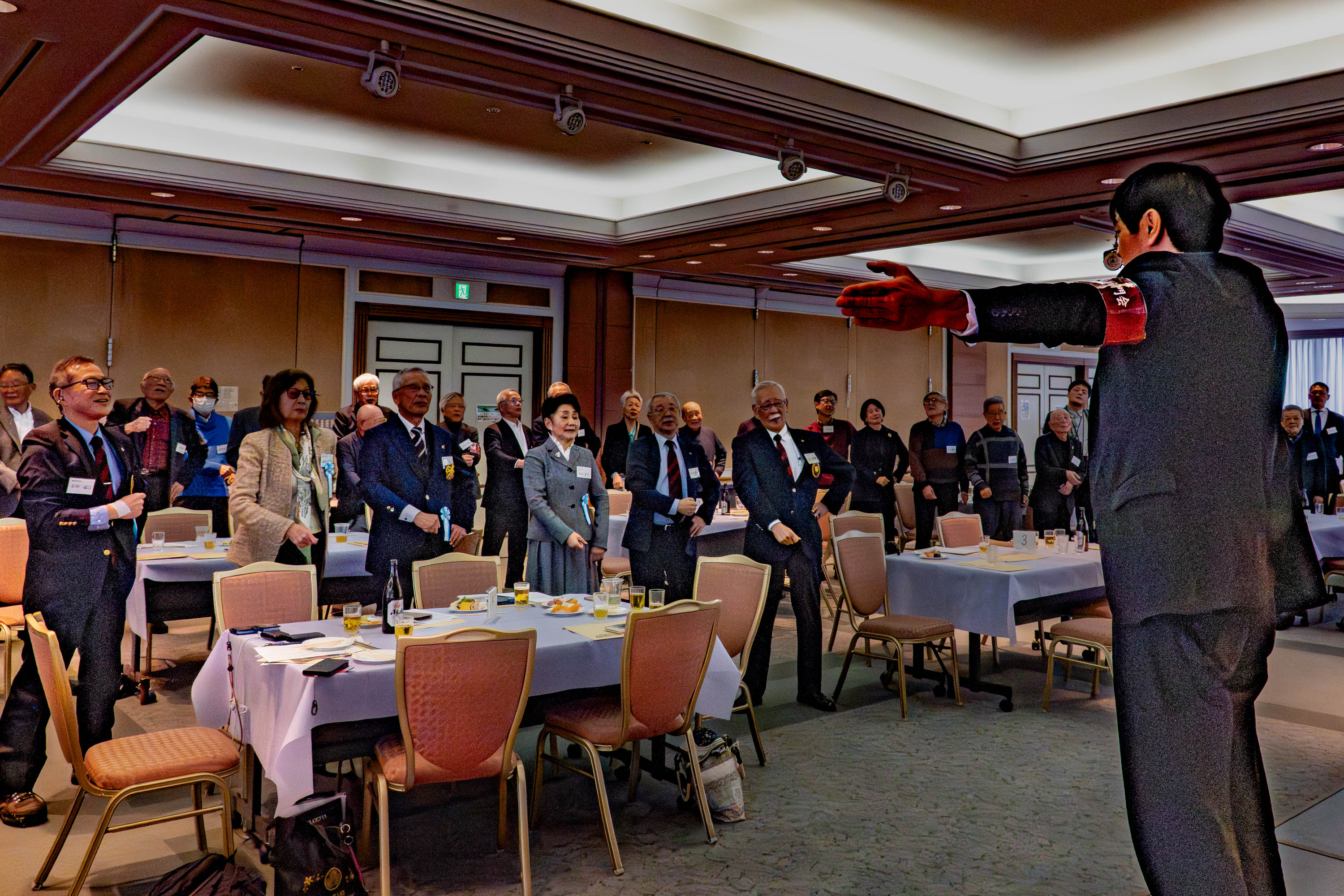 アトラクションでは、今年は新年らしく、先ほど卒寿のお祝いを受けられた山岸さんの落語を楽しみました。山岸さんは学生時代から落研で活躍なされ、武蔵野市の落語同好会で最長老として活躍しております。