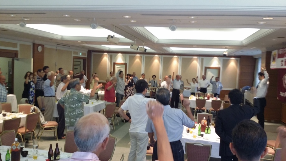 締めの挨拶は、小美濃隆相談役(第7代会長)。野本好朗常任幹事の指揮の下、早稲田大学校歌を斉唱し、角田正三事業委員会委員長の閉会のことばでお開きとなりました。
