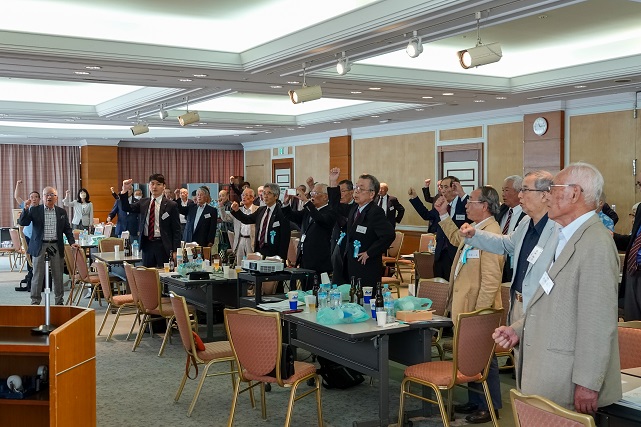 6月25日(日)、武蔵境スイングホールにて開催しました。会員67名、来賓他20名、総勢87名の出席者でした。 司会は第1部総会を、北原譲(1984・政経)常任幹事、第2部懇親会は、村山豊(1974・法)常任幹事がされました。