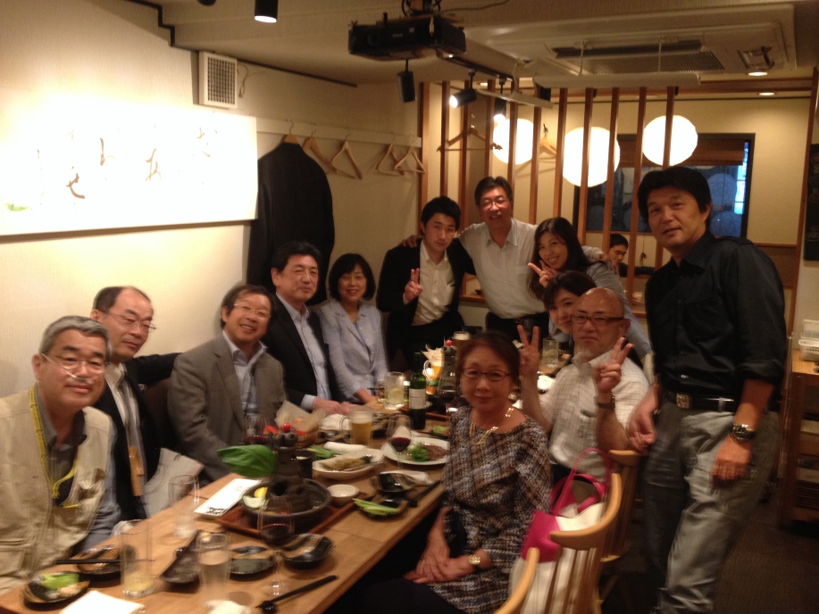 奥の広いテーブルが空いたので席を移ると、ほどなくして、池田さん、大竹さんが合流。その後、根本さんと早大卒の上司の政岡さんが、会議を終えて駆け付けてくれました。21時半前には予定より早く、部会長の堀さんが到着し、計12名の大盛況となりました。