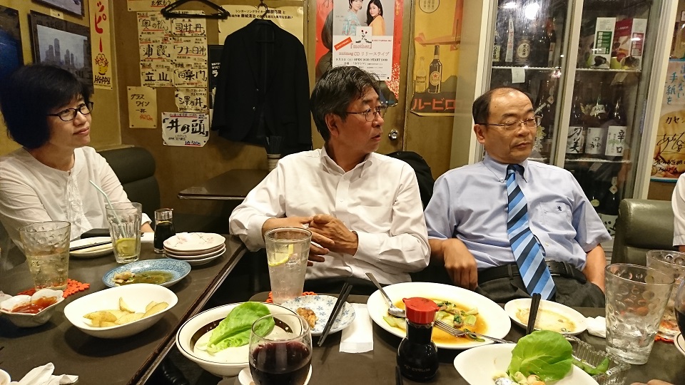 今回の「若手の会」は、吉祥寺の「カヤシマ」(佐藤孝一さんがオーナー)にて開催されました。 台風一過で、夕方になっても非常に蒸し暑かったのですが、全国各地で久しぶりに虹が見えた大変に素晴らしい日でした。 7時過ぎにカシマヤに到着しましたが、浅倉さん、赤尾さん、堀さん、大石さんの4名がすでにこられており、若手の会がスタートしておりました。 お盆休暇に入られているのか、前日までに世話人の堀さんに連絡のあった参加者は堀さんを含め6名でしたが、堀さんからの再度のメールの呼びかけにより、一挙に5名参加者が増え、総勢11名が集まり、いつも通りの賑やかな宴会となりました。 浅倉さんが講義をされている“時間の効率的な使い方のコツ”の話から始まり、いつものように趣味や仕事の話ですぐに盛り上がり、またカヤシマさんの名物料理のほかに今回は何品か新メニューもあり、いつもより一杯食べて飲んで楽しめました。 次回の開催は10月の第三火曜日の19時からとなりますが、詳細日程は世話人の堀さんより別途連絡がある予定です。 場所は、武蔵野稲門会の志村一篤さんが経営する吉祥寺の「吉祥寺シーフードマーケット ポルポ」にて開催します。 若手の会に参加してみたいと思われる方は、お試し参加も大歓迎ですので、堀裕一部会長(hori@hori-laws.jp)までご連絡をください。 ※東京都武蔵野市御殿山1-2-1 ビュープレップスビルB1 焼き鳥の「いせや総本店」の隣のビルです。 (海宝 和養 記)