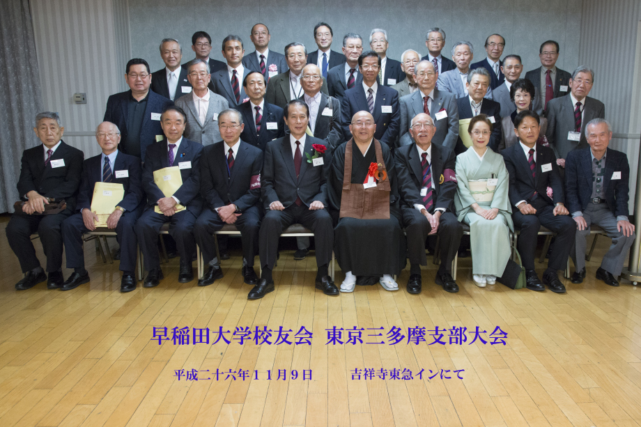 2014年11月9日(日)14時から吉祥寺東急インにて、早稲田大学総長鎌田薫様、早稲田大学校友会代表幹事 福田秋秀様、他のご来賓の方々をお迎えし、約210名にて盛大に開催されました。