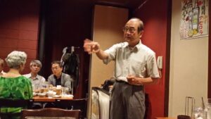 涼しくなり、秋の虫の声が聞こえる中、23日に武蔵野稲門会の「納涼会」が開催され、24席が瞬く間に満席になりました。19日には高校野球の早実が敗退し、参加者は冷静に試合を振り返りました。乾杯の後、初参加の藤崎さんと常連宣言の福原さんが挨拶し、参加者が自己紹介をしました。明治の古地図を見ながらの歴史の話や、江戸城再建についての話もありました。最後は「都の西北」を歌って締めくくり、飲み足らないメンバーは別のパブで散会しました。