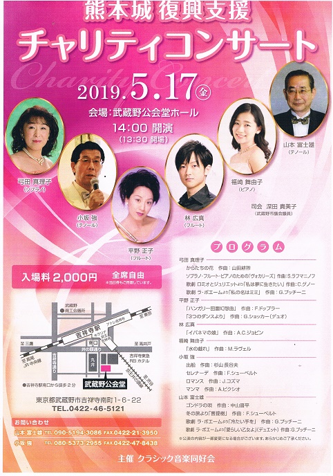 ◆ 2019年5月13日の講演会と5月17日の熊本城復興支援チャリティーコンサートのご案内 (山本富士雄さんから)