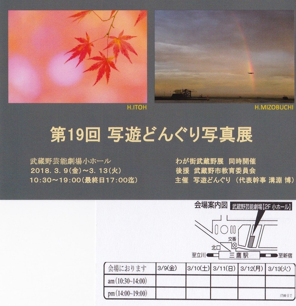 ◆第19回写遊どんぐり写真展が2018年3月9日~13日に開催されます。 (山下さん、宮崎さん)